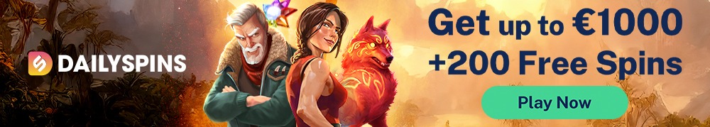 DailySpins Casino Willkommensbonus | 100 % bis zu 1.000 $/€ oder 1 BTC + 200 Freispiele Umsatzbedingung: x40 | Kein Promo-Code | Mehr Holen |